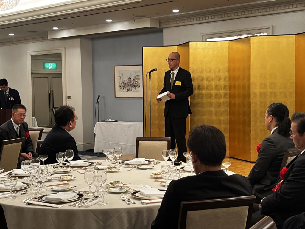組合顧問の平口衆議院議員・平岡市議会議員、荷受の豊後会長・坂田社長・天方専務、仲卸組合の佐古田理事長、広島県信用組合の深山理事長ら来賓を招いて、新年互礼会を開催し、組合員同士及び市場関係者と親睦を深めました。