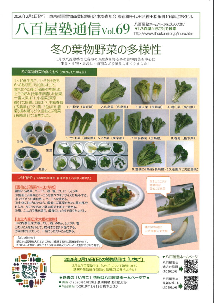 東京都青果物商業協同組合本部の青年会より、青果のさまざま情報をピックアップしてお届けする”八百屋塾通信”が毎月1回発行されます。